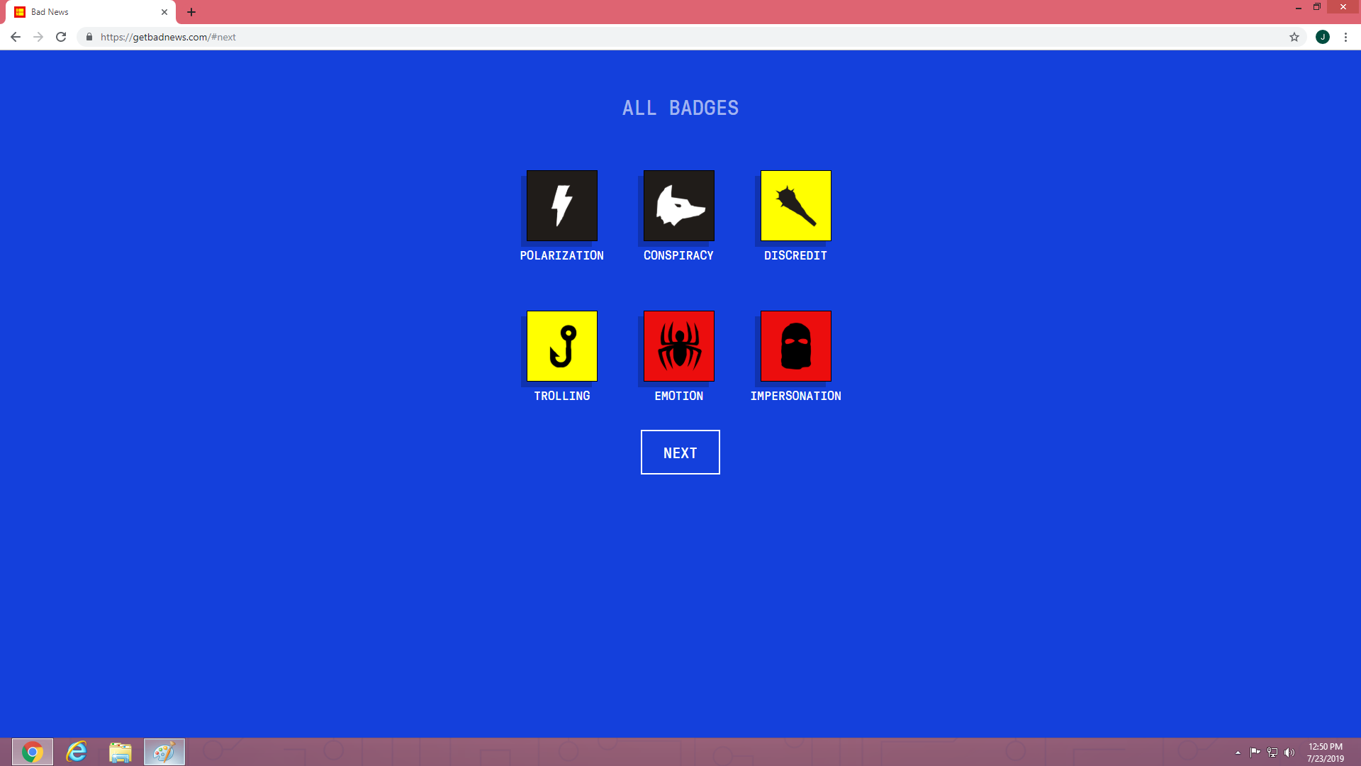 The badges signify the abilities that you need to have, in order for you to be a fake-news writer. In the game, one of the techniques that the writer has is, through using the social Media. An example of this is using Twitter to post something that is fake and really looks like a real fact when you read it. Our society had been greatly influenced by media because it is the mode of communication nowadays. but, one thing that is disadvantageous to this is, in one just click away, you could share or repost something that has false information.